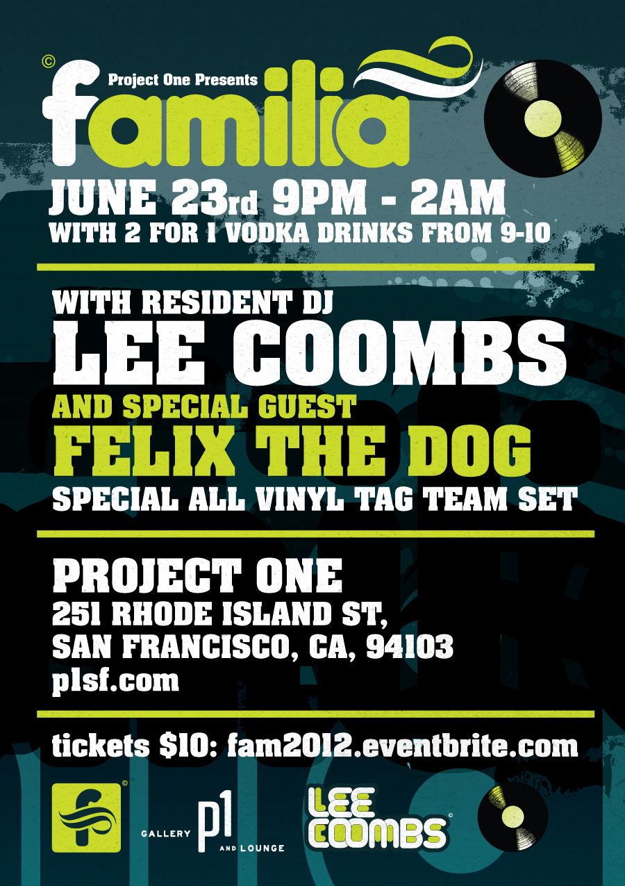 Lee Coombs @ Familia, Project One, SF Saturday June 23rd